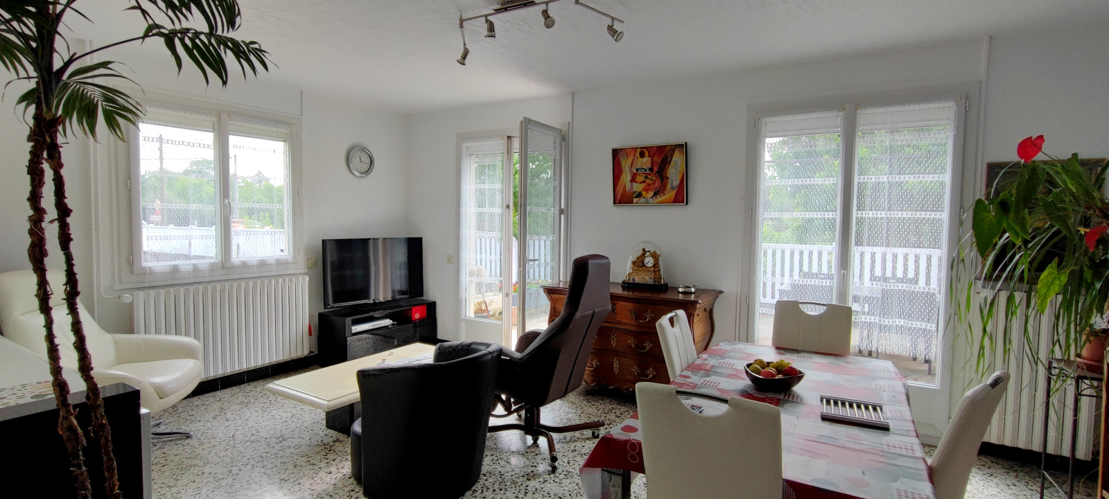 - Au rez de chaussée : une pièce à vivre, une cuisine séparée, un espace repas, un bureau, une salle d'eau, WC ainsi qu'une terrasse.